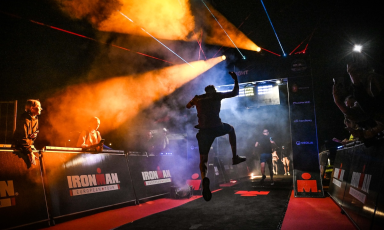 Run to the finish line of the IRONMAN 70.3 Warsaw event
